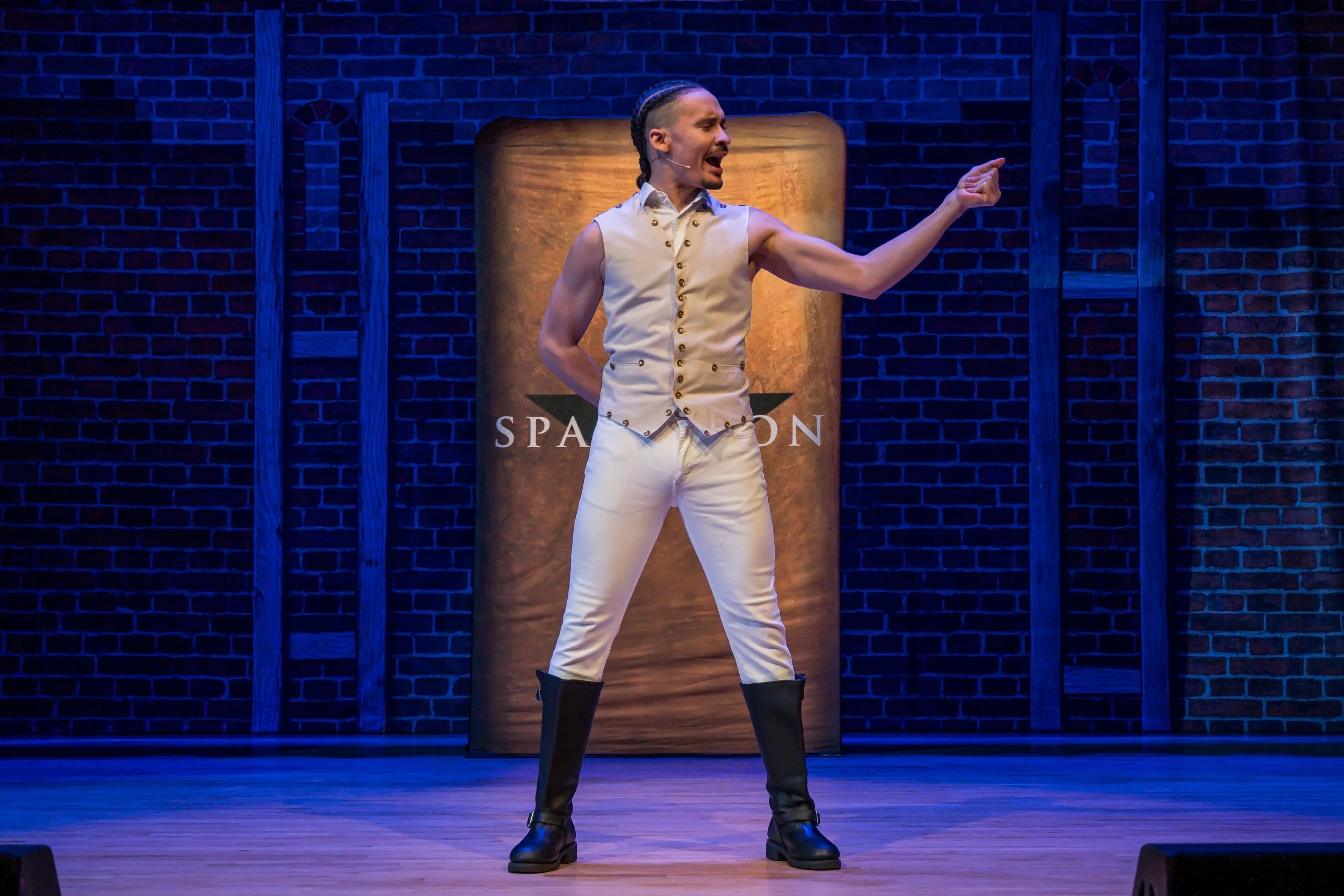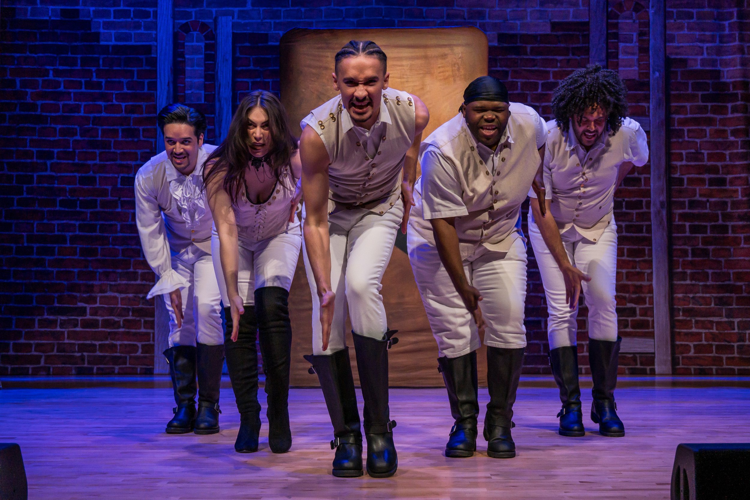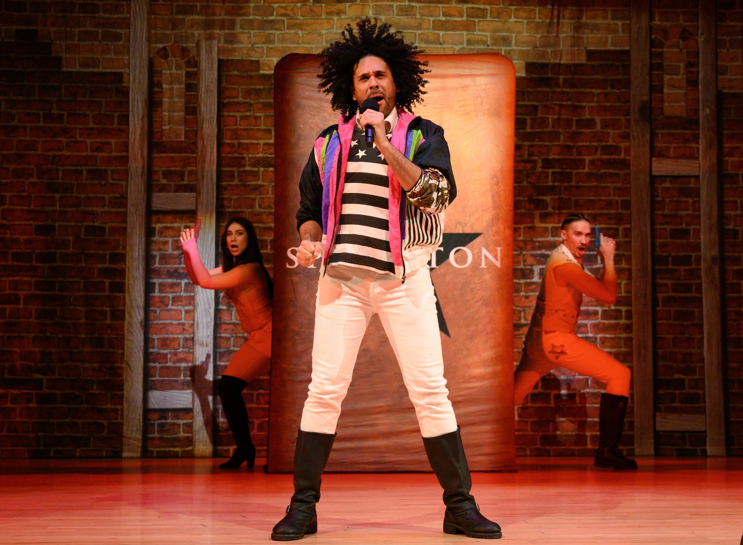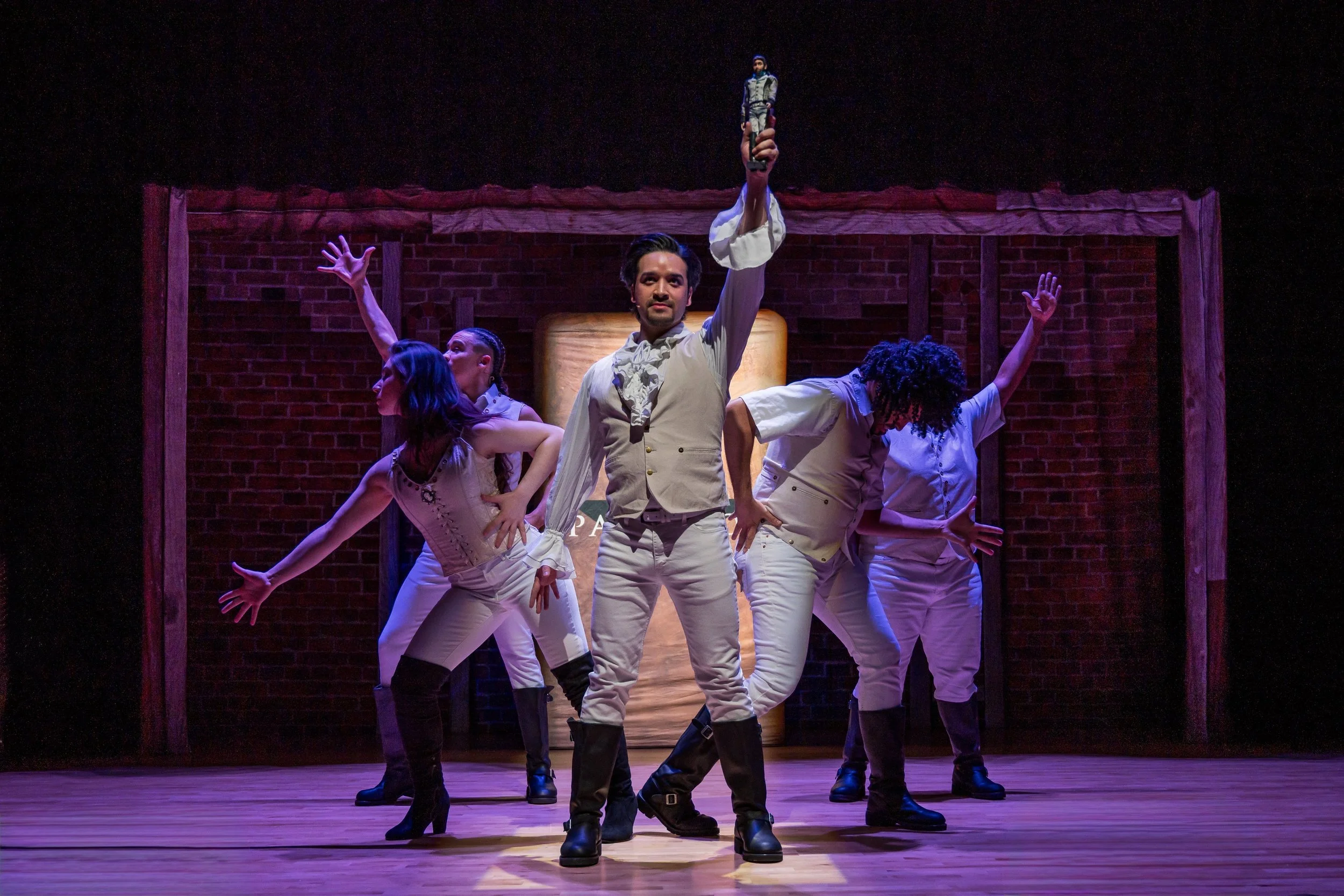 Cast: Jorge Blakely as Lin Manuel Miranda, Miles Davis Tillman as Aaron Burr, Jason Denton as Daveed Diggs, Marissa Hecker as The Divas, Justin Parker as Washington